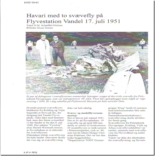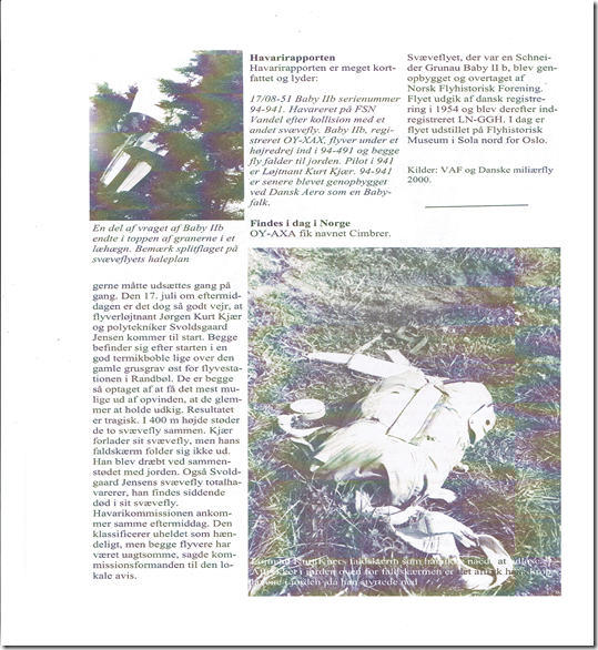 Desværre var der et tragisk dobbelthavari, hvor to Grunau Babyer tæt ved Vandel flyveplads søgte termik i lav