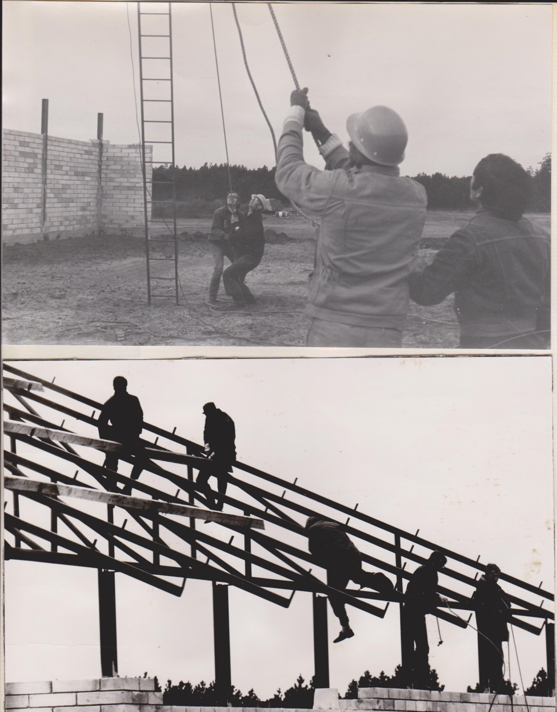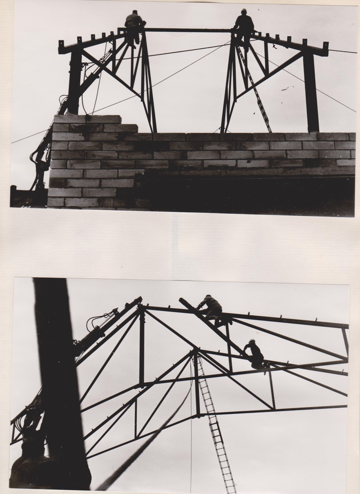 Lastbilens kran hejste spærene op, og vi kravlede rundt som fluer og spændte fast. De skulle